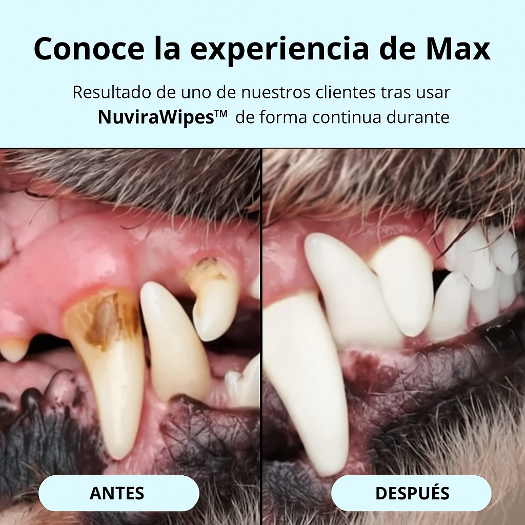 Desde cachorros hasta perros mayores, NuviraWipes™ hacen que la higiene dental en casa sea rápida y sin estrés. Su diseño compacto y fácil de llevar te permite usarlas tanto en casa como de viaje, ayudándote a mantener la constancia en la rutina dental de tu mascota.